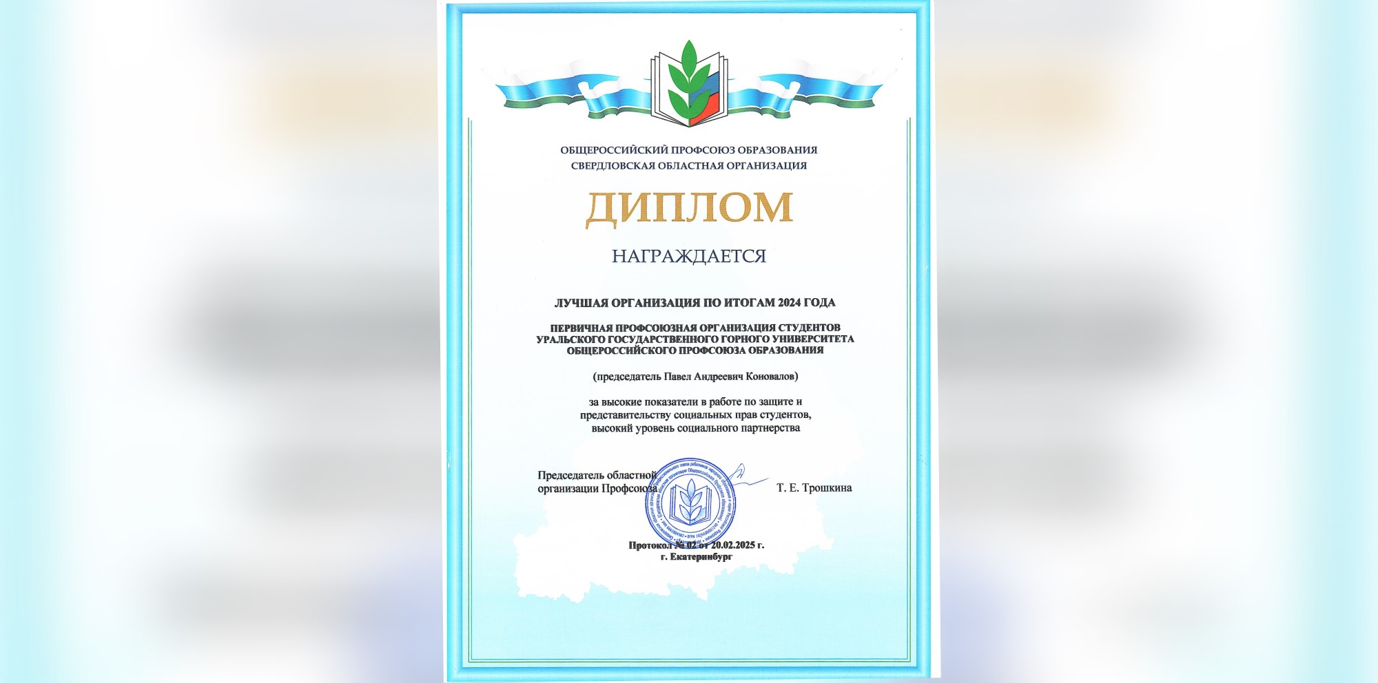 Первичная профсоюзная организация студентов Уральского государственного горного университета была признана лучшей студенческой организацией профсоюза образования Свердловской области по итогам работы за 2024 год.