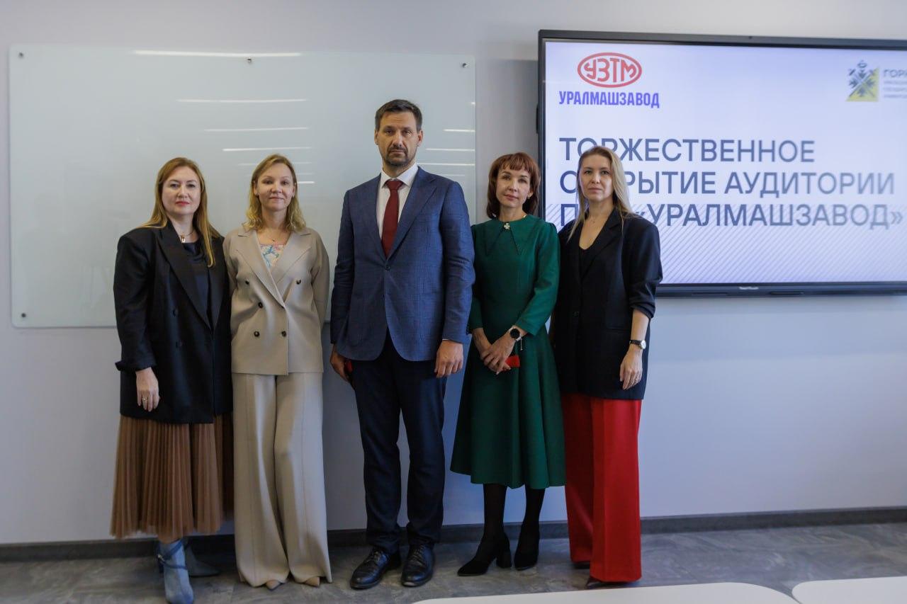 В торжественной церемонии открытия обновленного учебного класса приняли участие почетные гости: директор по персоналу ПАО «Уралмашзавод» Юлия Безукладникова, заместитель управляющего филиалом «Уральский» АО «Газпромбанк» Елена Копылова и начальник управления административной поддержки ПАО «Уралмашзавод» Надежда Сомова.