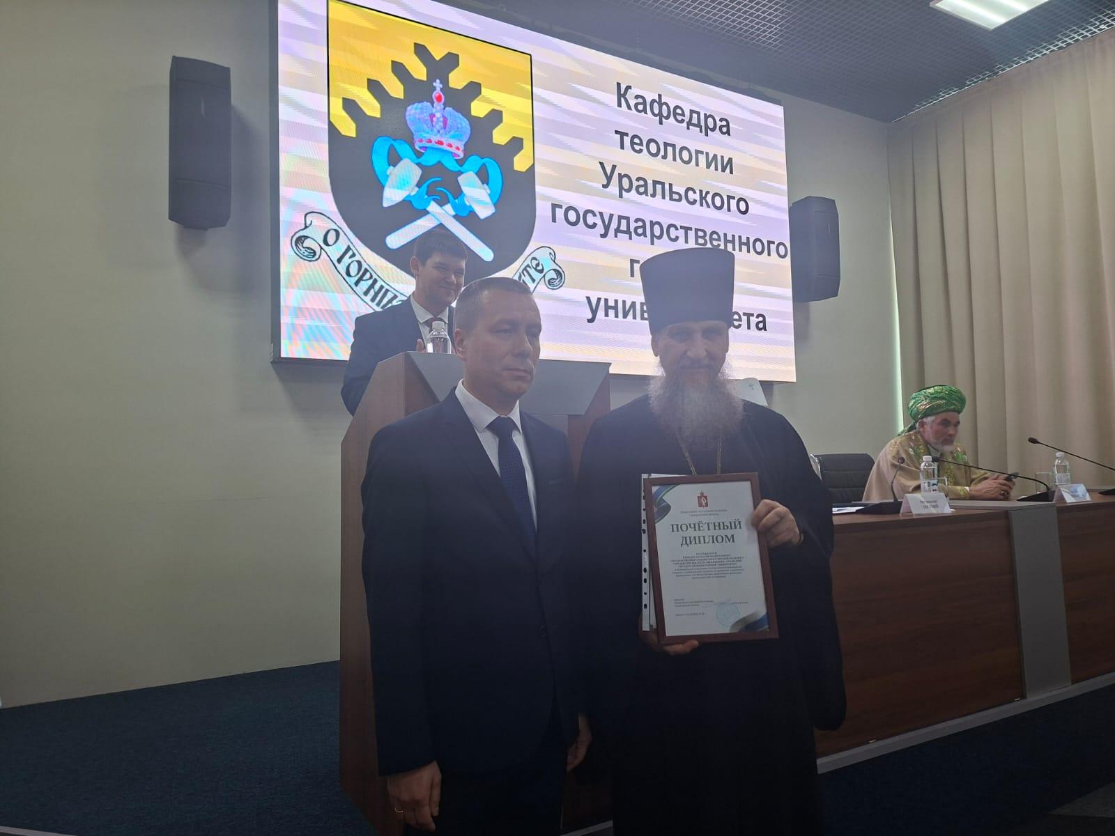 Кафедра теологии Уральского государственного горного университета являлась соорганизатором научного форума, а ее преподаватели приняли активное участие в пленарном заседании. Доцент кафедры теологии Алексей Старостин выступил в качестве модератора и прочитал доклад на тему «Мировоззрение жителей Свердловской области и религиозная ситуация в регионе: тенденции и парадоксы», доцент кафедры теологии Павел Суслонов рассказал о конфессиональных границах и духовных ориентирах как основе межрелигиозного диалога и сотрудничества.