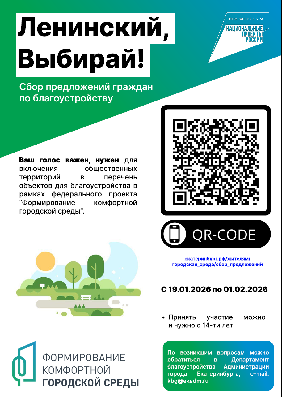 До 1 февраля в Екатеринбурге проходит сбор предложений граждан по благоустройству общественных территорий в рамках федерального проекта «Формирование комфортной городской среды».